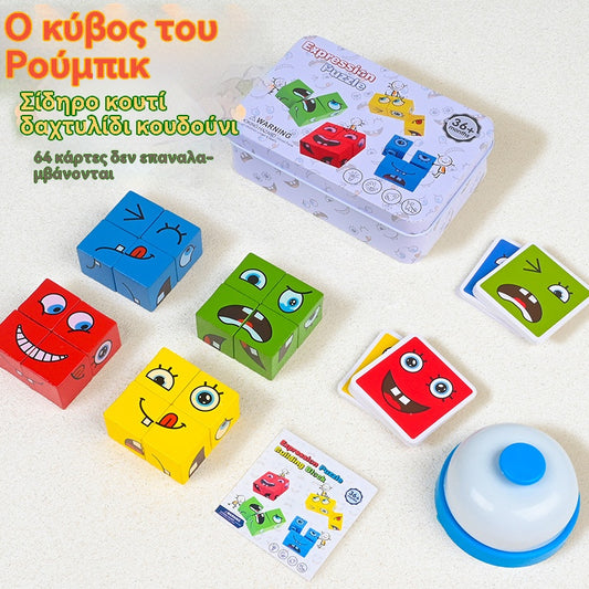 🔥Παιδικό ξύλινο επιτραπέζιο παιχνίδι κύβου του Ρούμπικ που αλλάζει πρόσωπο, εκπαιδευτικό παιχνίδι με τουβλάκια