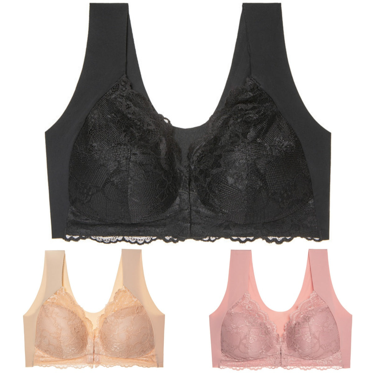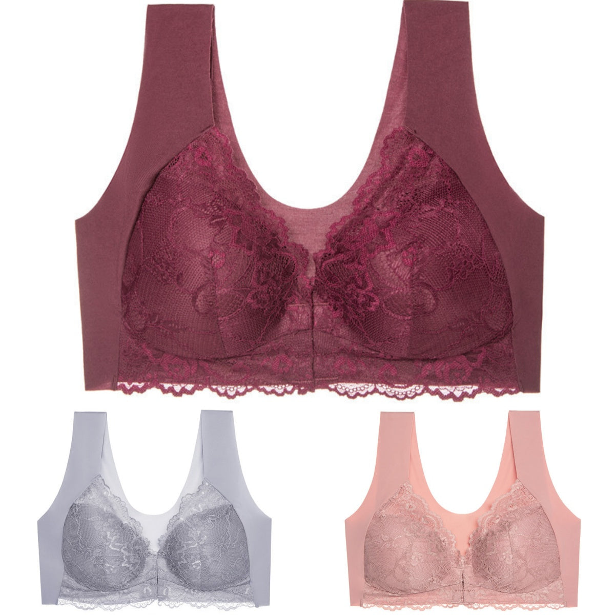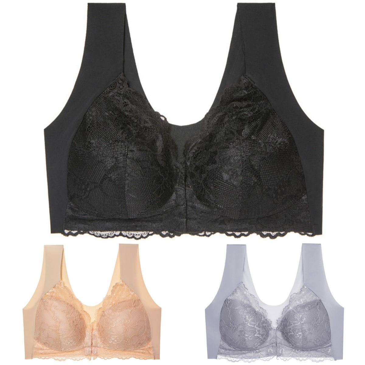 ✨Ειδική προσφορά περιορισμένης διάρκειας🔥【3 τεμάχια】 Μεγάλο μέγεθος με μπροστινό κούμπωμα, σέξι, χωρίς μπανέλα, σουτιέν με όμορφη πλάτη
