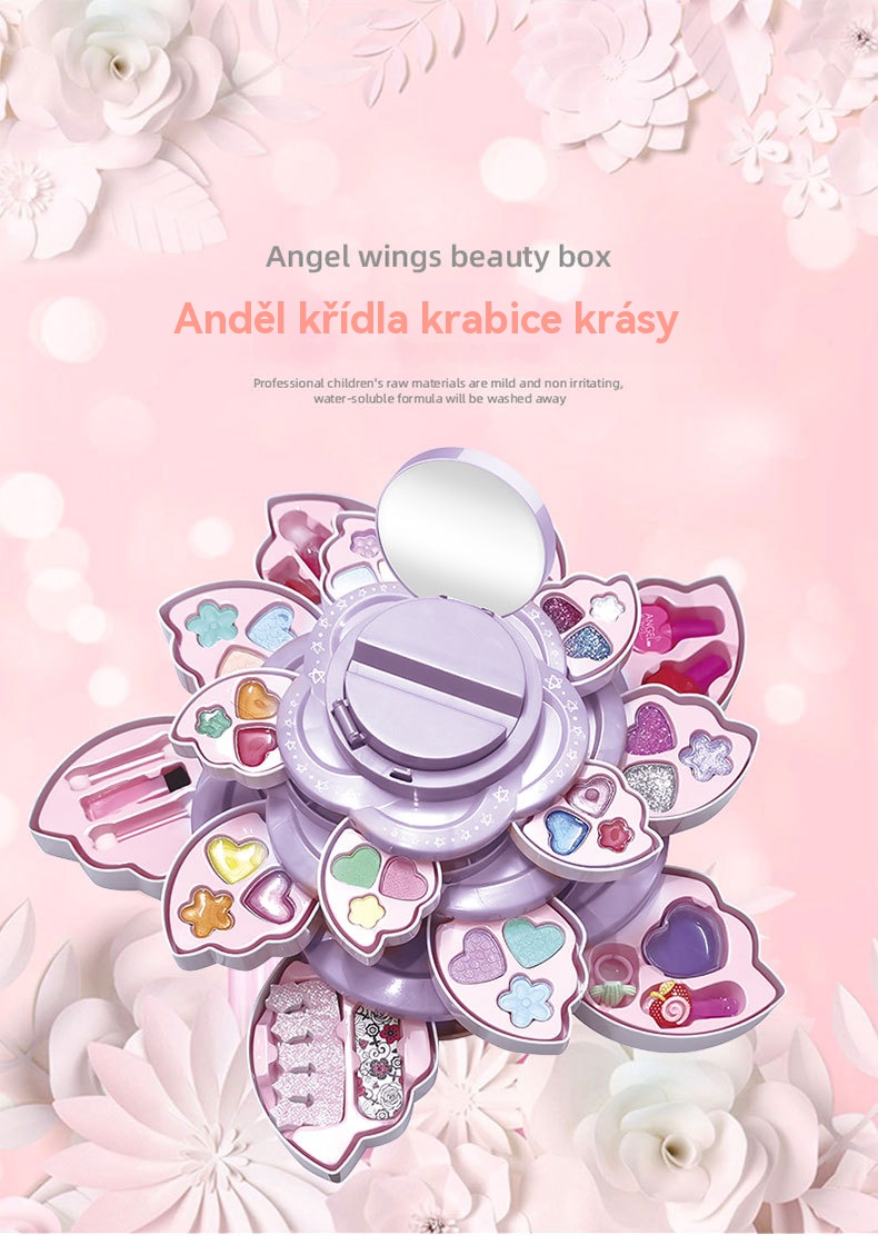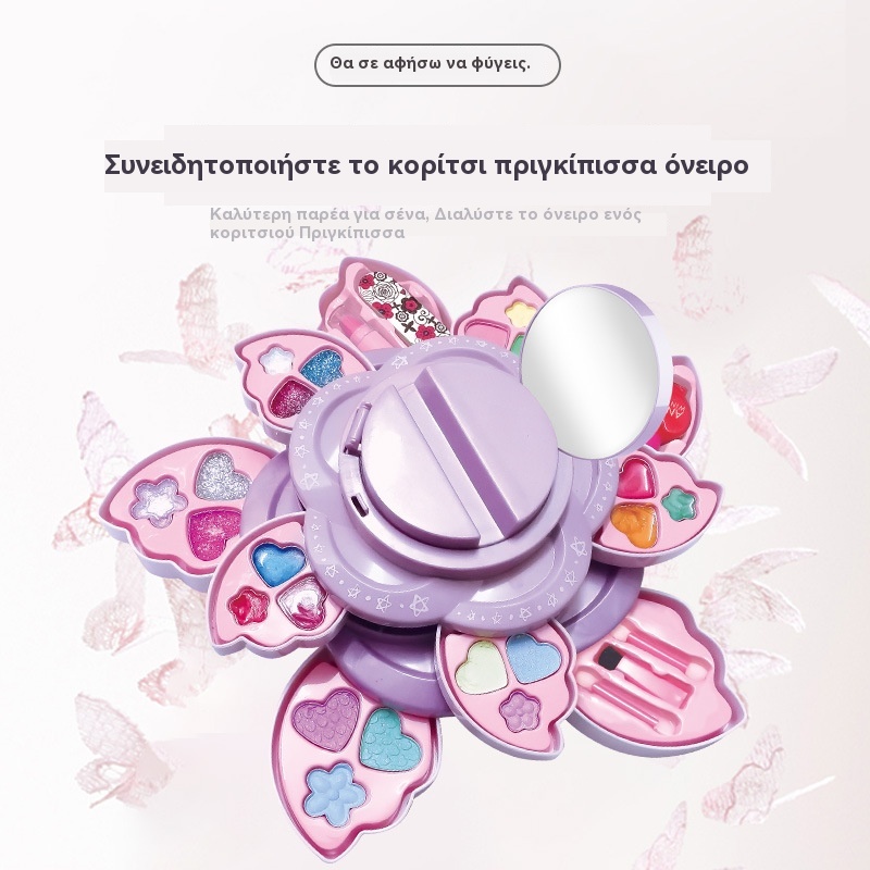 👸💄🎁🔥50% έκπτωση🔥Παιδικό περιστρεφόμενο σετ καλλυντικών με floral μοτίβο, παιχνίδια μακιγιάζ, αξεσουάρ για πριγκίπισσες, χριστουγεννιάτικα δώρα