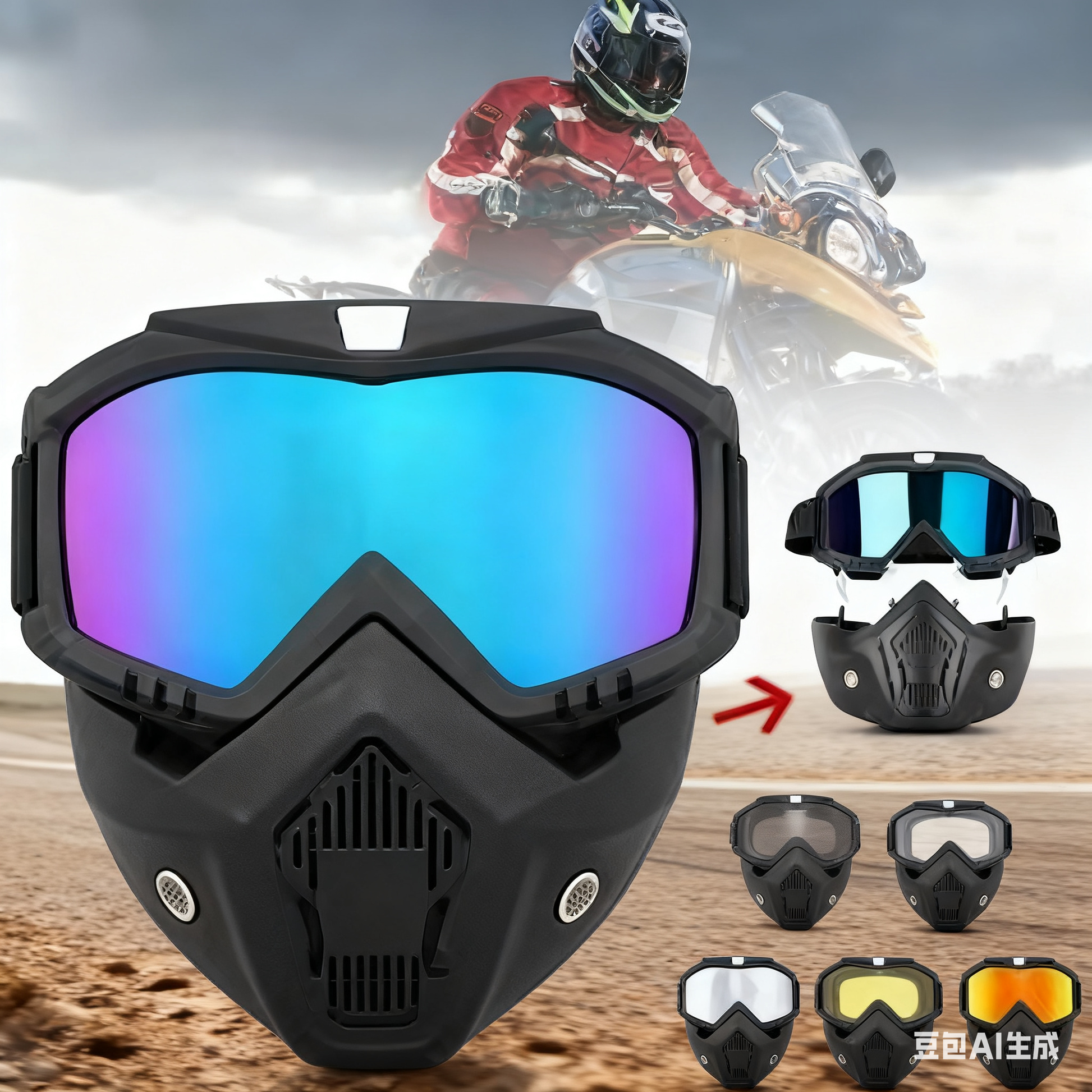 🔥 Προσφορά περιορισμένου χρόνου😎Κράνος μοτοσικλέτας με φακό PC, ιππασία, εξοπλισμός εκτός δρόμου, εξωτερική μάσκα Harley, γυαλιά